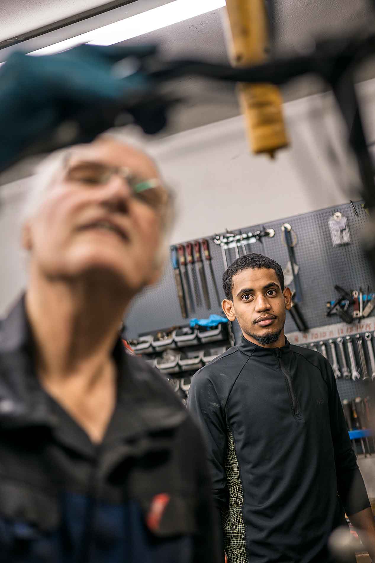 ”Det er min første dag i cykelværkstedet. Jeg er her for at vise min taknemmelighed for cykelprojektet. Jeg cykler selv og har lidt erfaring med at reparere cykler. Jeg vil gerne komme en gang om ugen og hjælpe til og lære mere.” Mihreteab Simret er fra Eritrea og har været i Danmark i lidt over 1 år. Arbejder på McDonald’s.